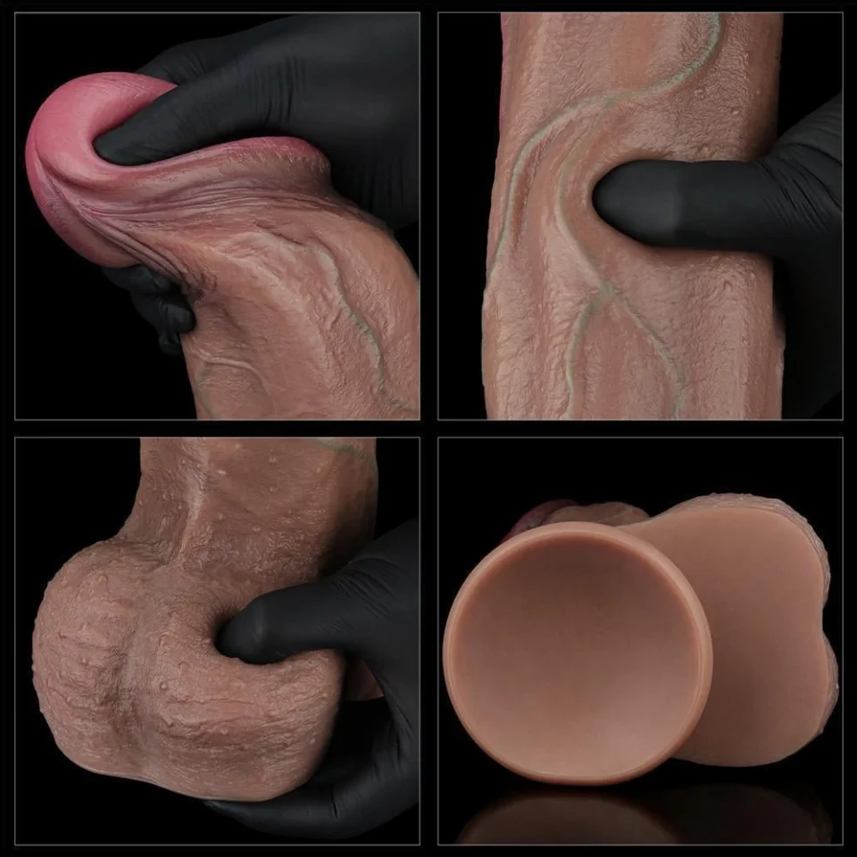 Yeni Nesil Çift Katmanlı 33 cm Realistik Dev Melez Dildo Penis
