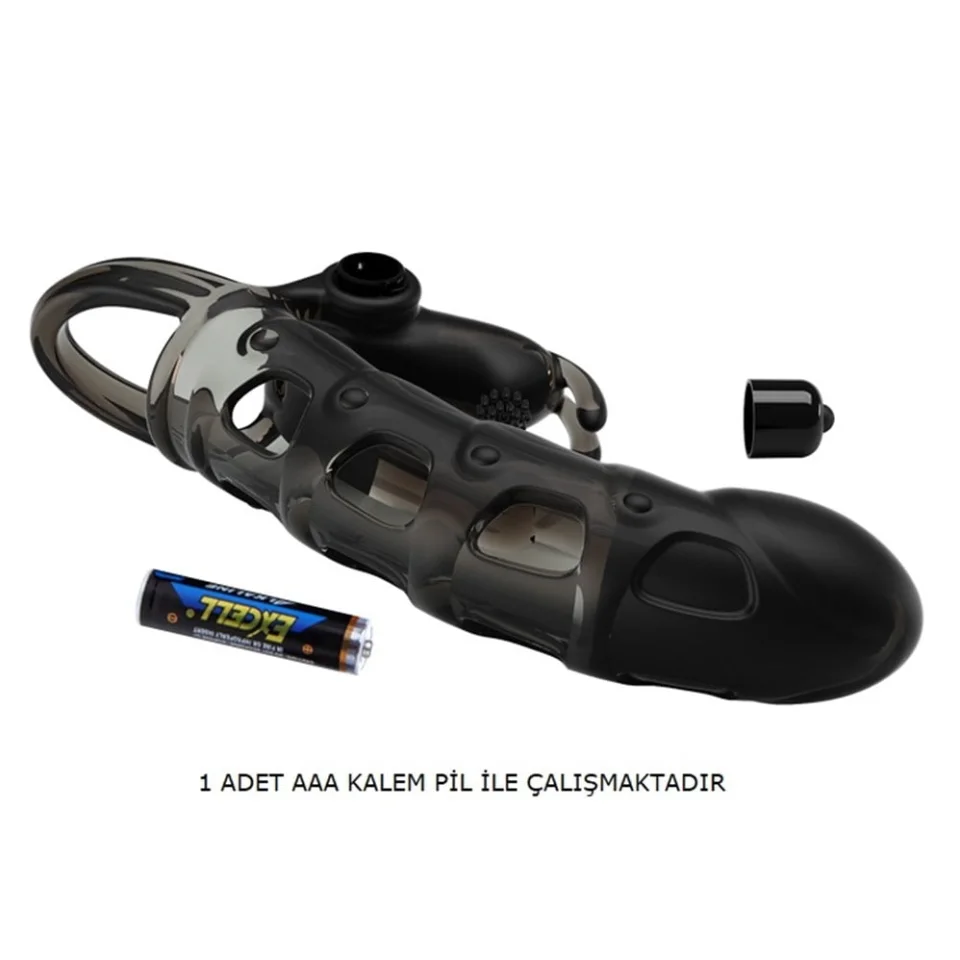 4 cm Dolgu Uzatmalı 10 Titreşimli Zenci Penis Kılıfı Prezervatif Vibratör